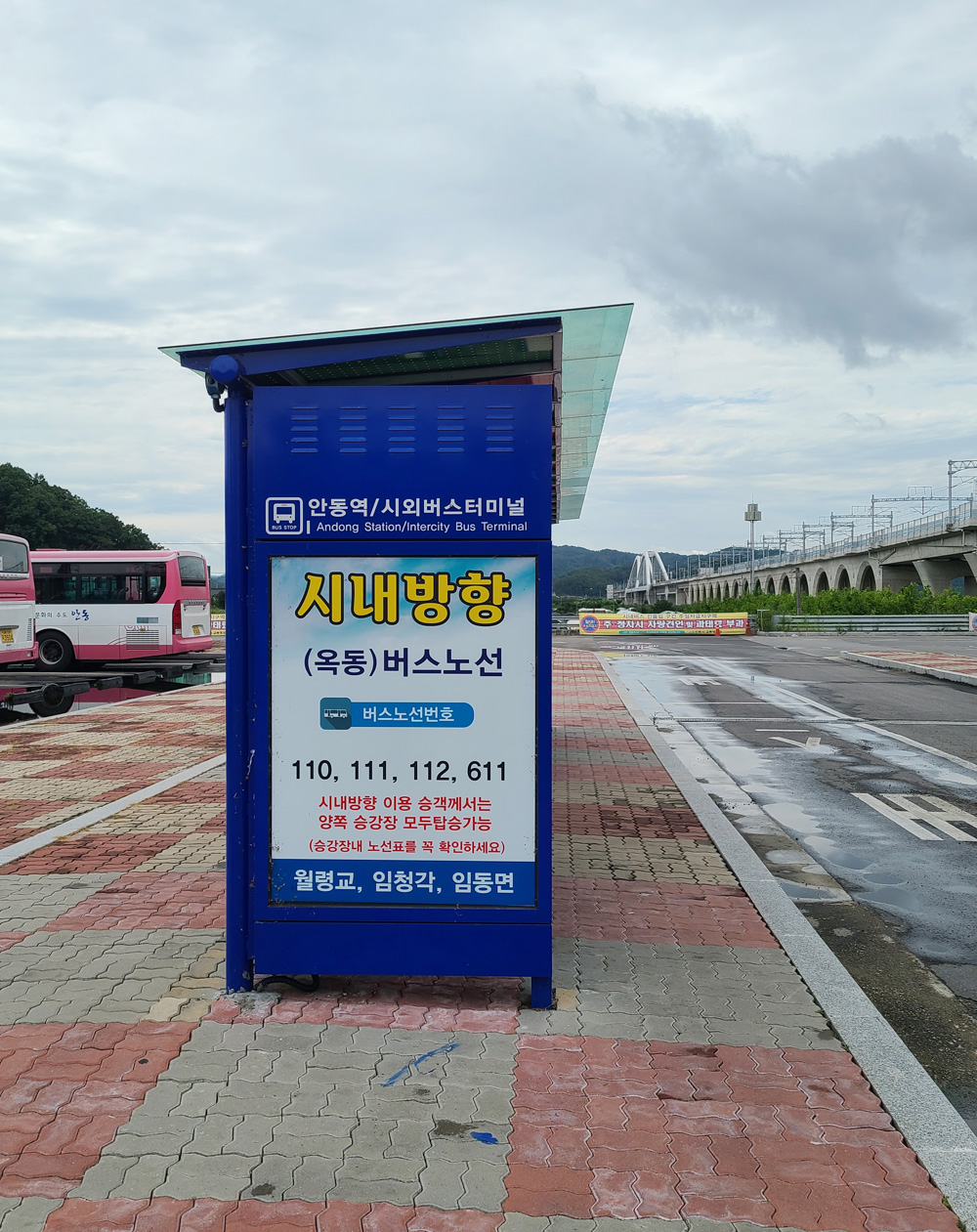 안동댐 월영교와 임청각, 임동면 방면 승객은 옥동 시내방향 정류장에서 탑승하면 됩니다.