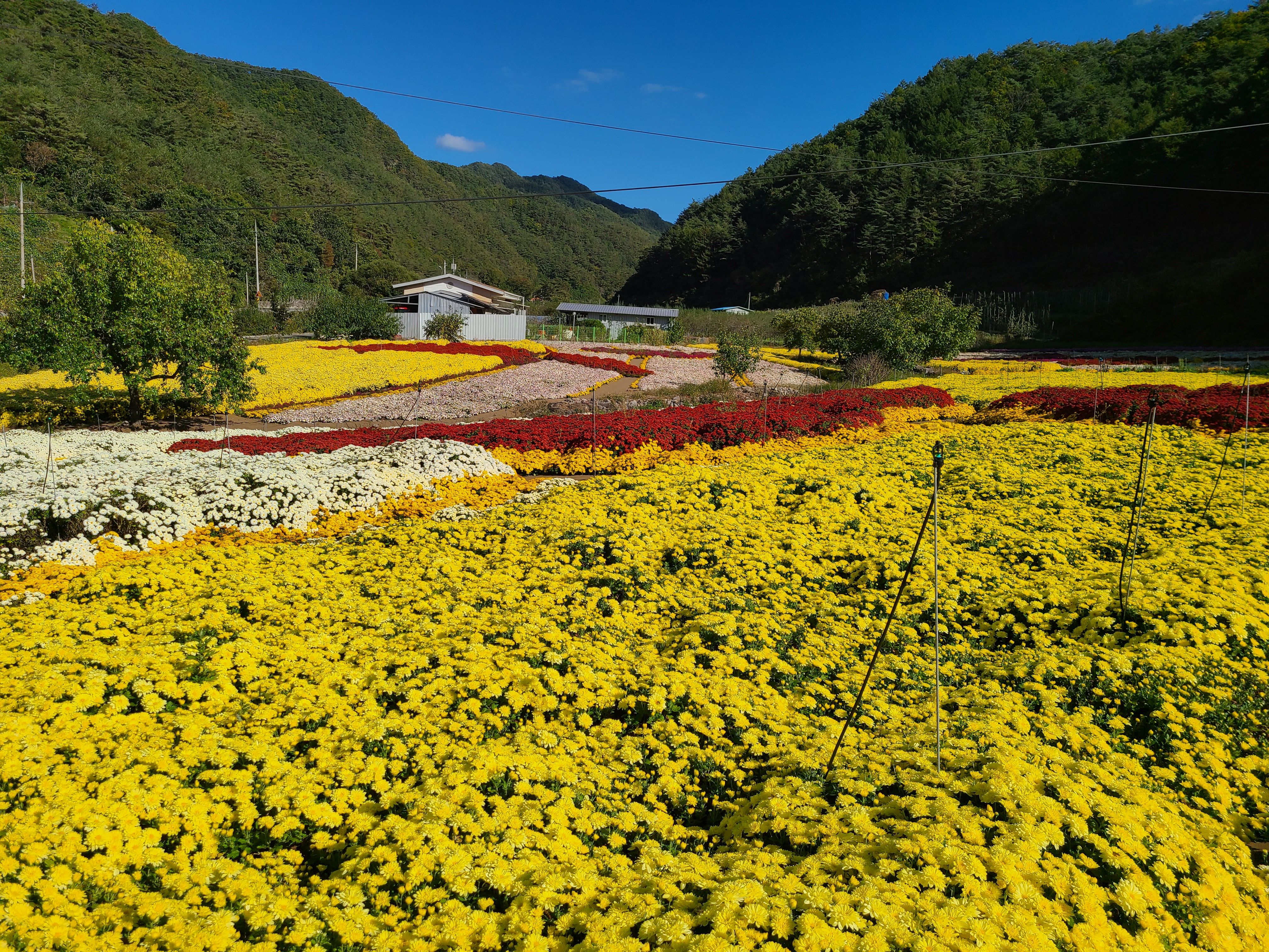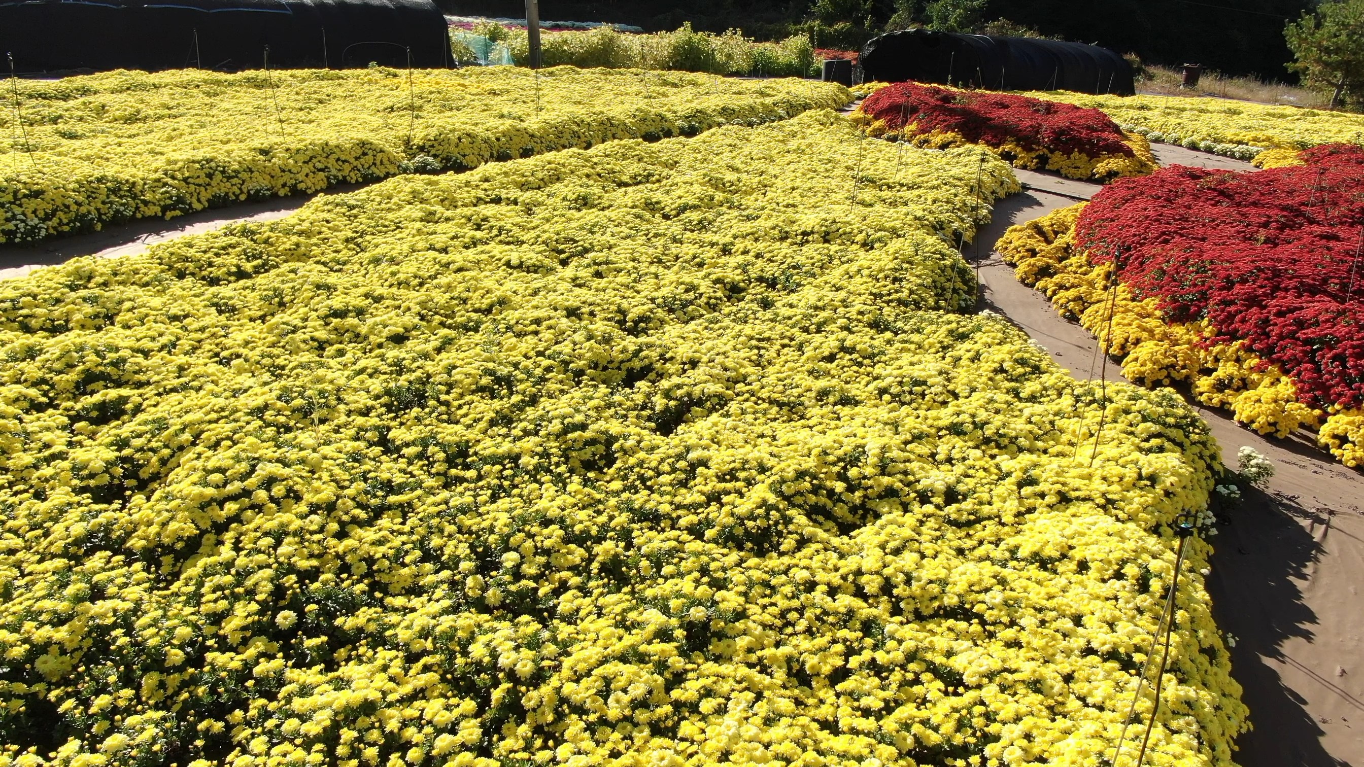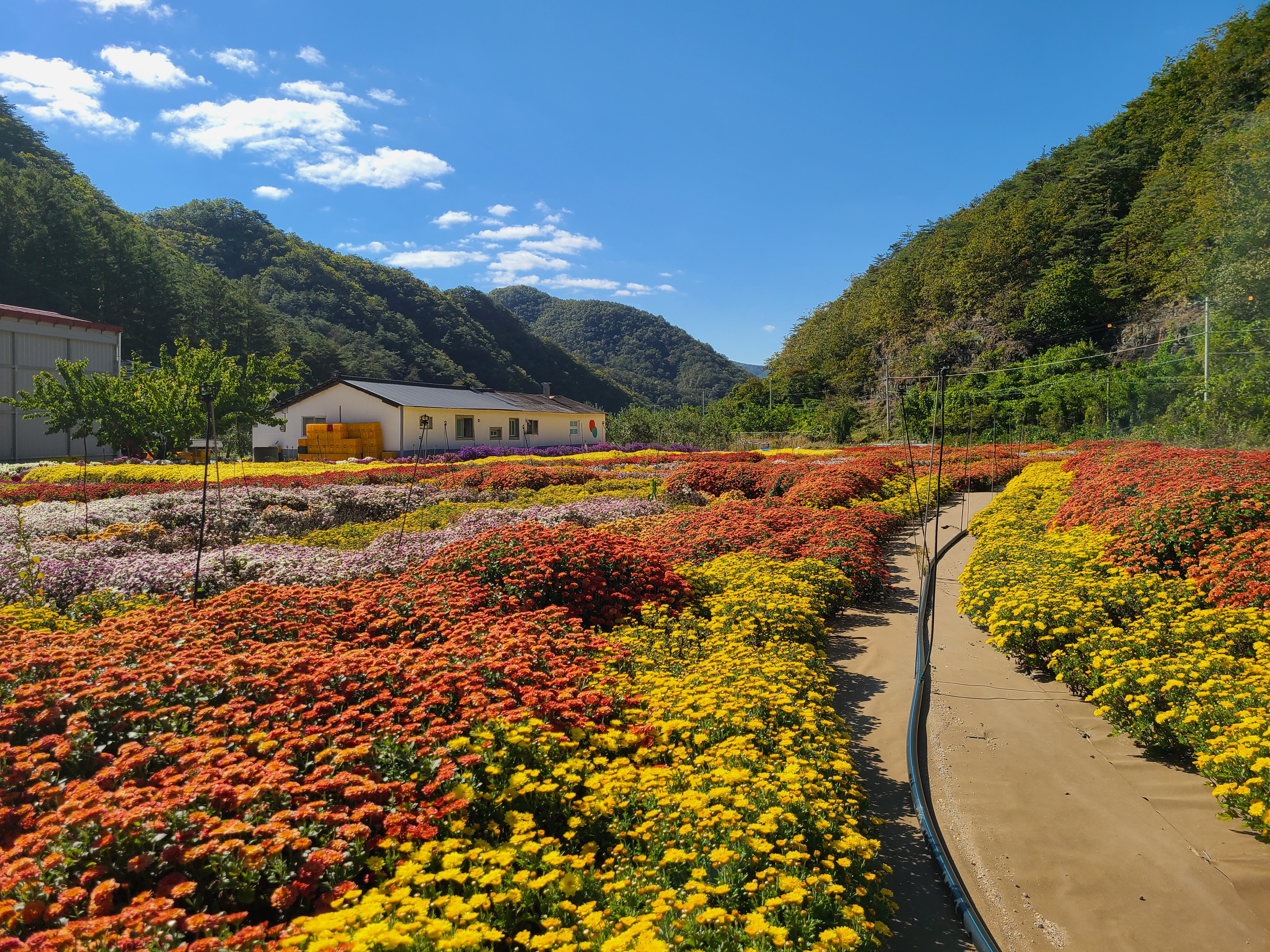 쌀쌀한 날씨에도 예쁘게 피어 있는 국화들