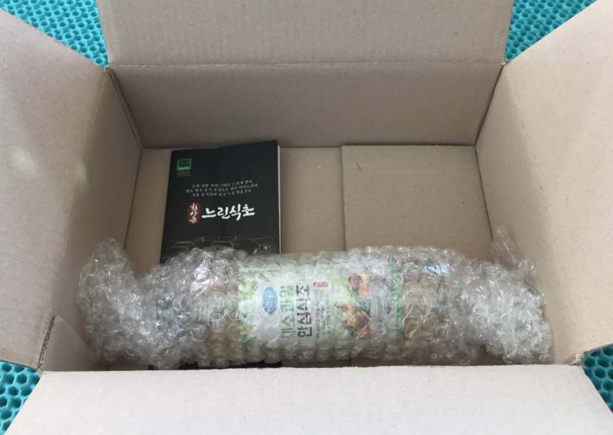 PET병이라 파손의 우려는 없으나 혹시나 있을지 모르니 뽁뽁이로 감싸서 포장