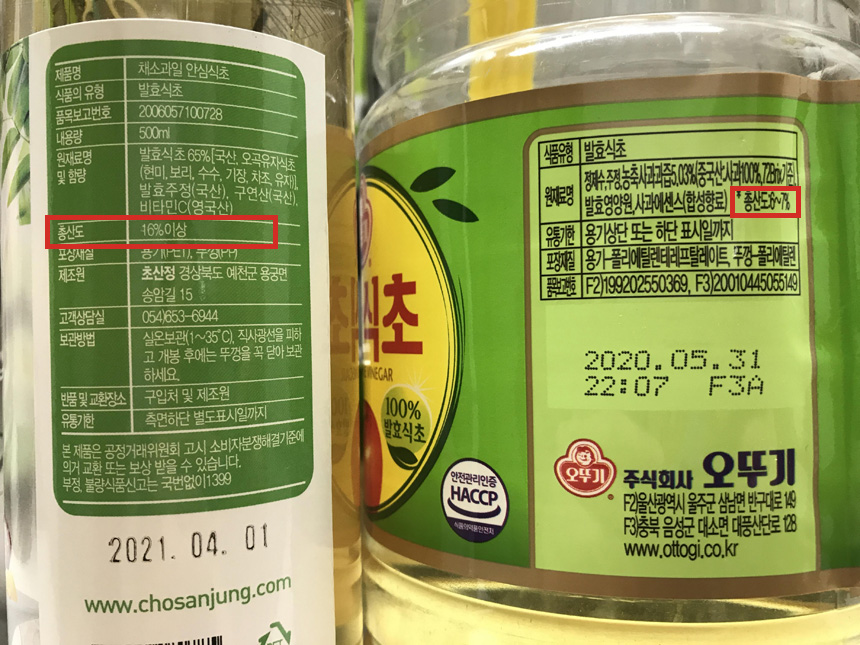일반식초 보다 산도가 2배 이상 강하므로 섭취하기 보다 세척용으로 사용하시길...(총산도 16% 이상)