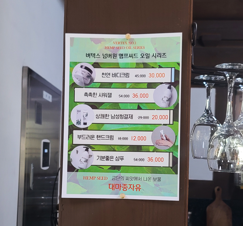 대마힐링카페라는 이름답게 대마오일(햄프씨드 오일) 상품도 판매하고 있어요.