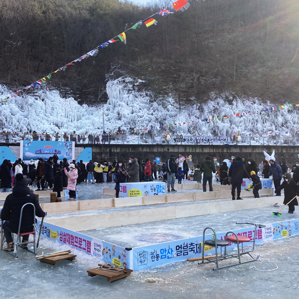 안동 암산얼음축제에서는 겨울 대표 놀거리인 얼음썰매와 스케이트, 빙어 · 송어 얼음낚시를 즐길 수 있고요.
