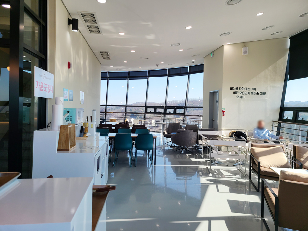 카페 내에 테이블도 많고 전망도 좋아 신상 카페로 소문이 나면서 주말이면 제법 많은 사람이 찾아온다고 해요.
