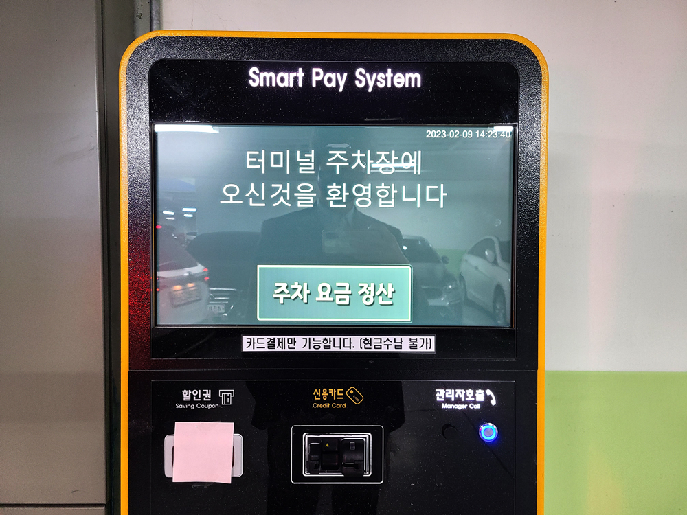 카드전용 무인정산시스템으로 운영되기 때문에 사전 무인 정산기 및 출차시 출구 정산기에서 주차요금을 결제할 수 있습니다.