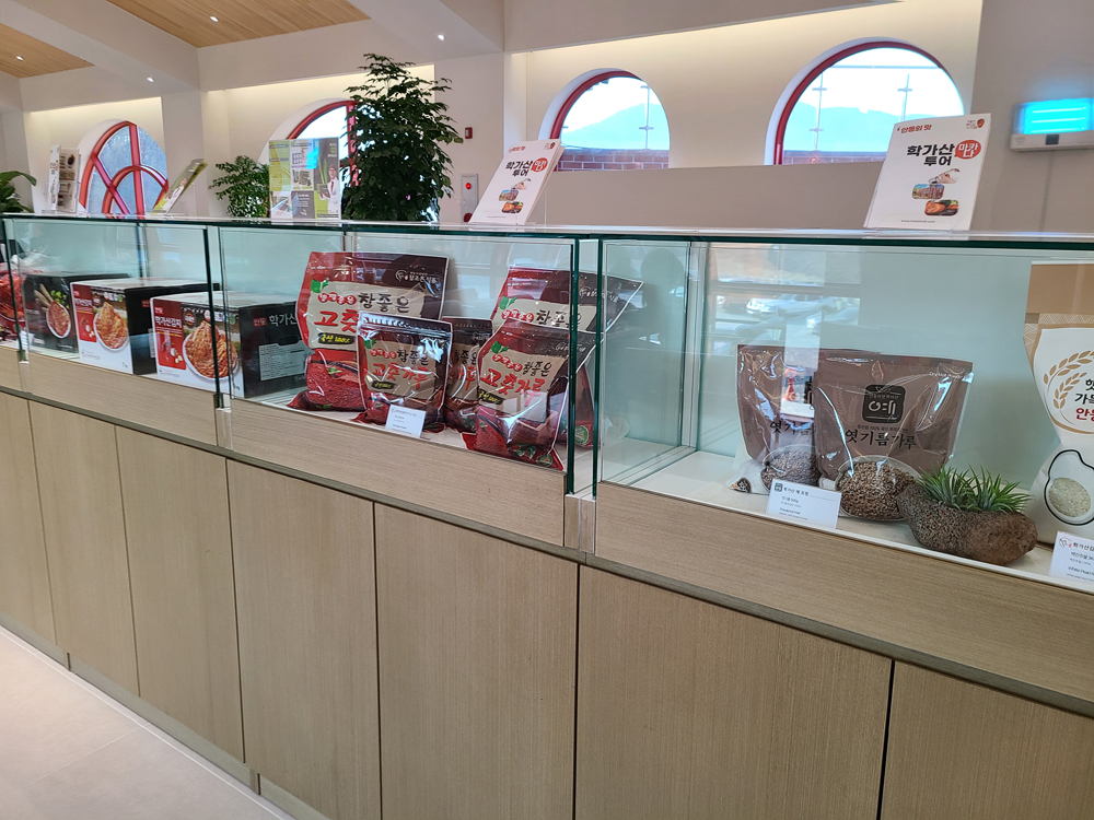 김치공장에서 운영하는 카페라서 2층에는 학가산김치 홍보 코너가 있는데 이 곳에서 김치 구매도 할 수 있다고 해요.