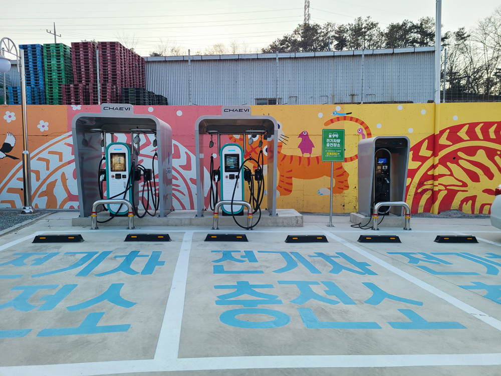 주차장 넓고 전기차 충전소도 갖추고 있어요.