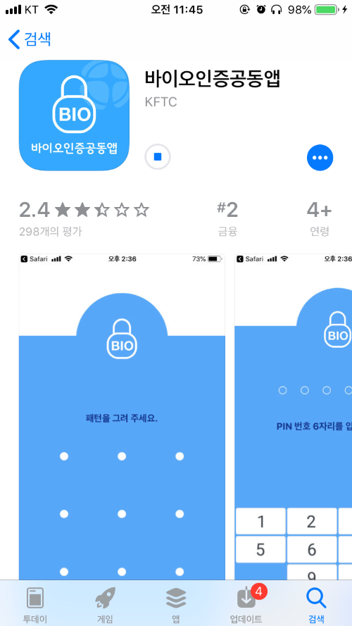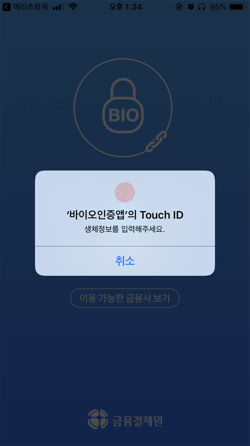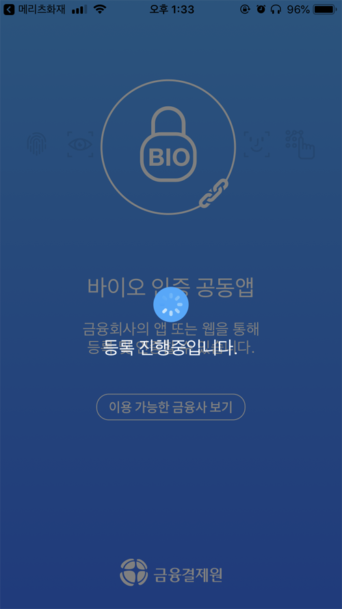 지문이 가장 간편해 보이는데 '바이오인증공동앱'이 미리 설치된 상태여야 원활한 진행이 가능하다.