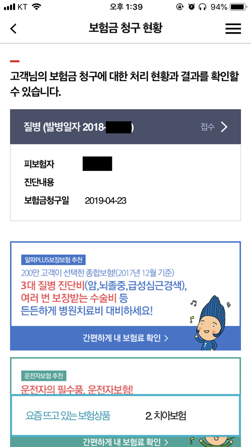 수술이나 입원이 아니라면 굳이 외래진료비나 1~2만원 하는 약값 보험료를 받기 위해 보험회사를 방문하던가 콜센터 접수 후 팩스를 보내는 것도 번거로워 소액 청구는 미뤄온게 사실이다.
