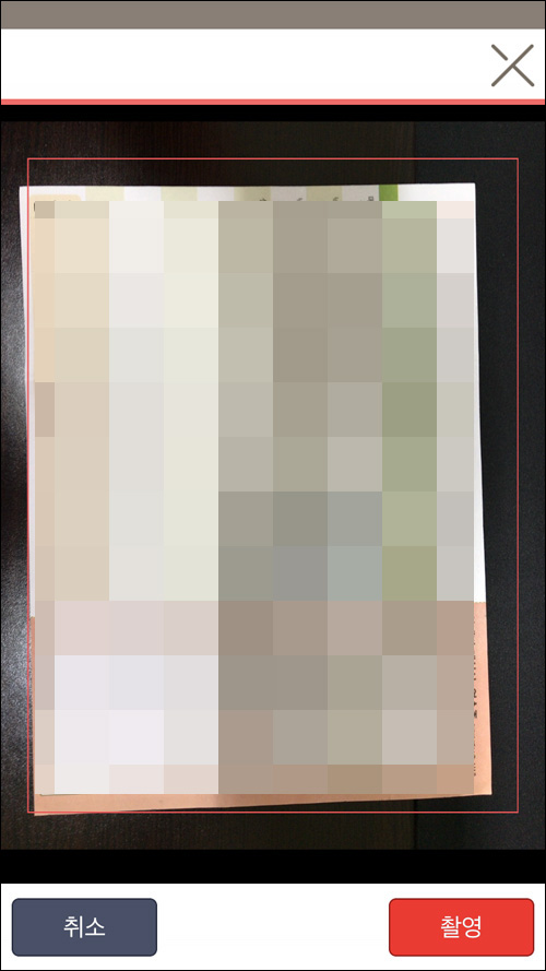 빨간색 라인 안에 서류가 들어가게 촬영!
