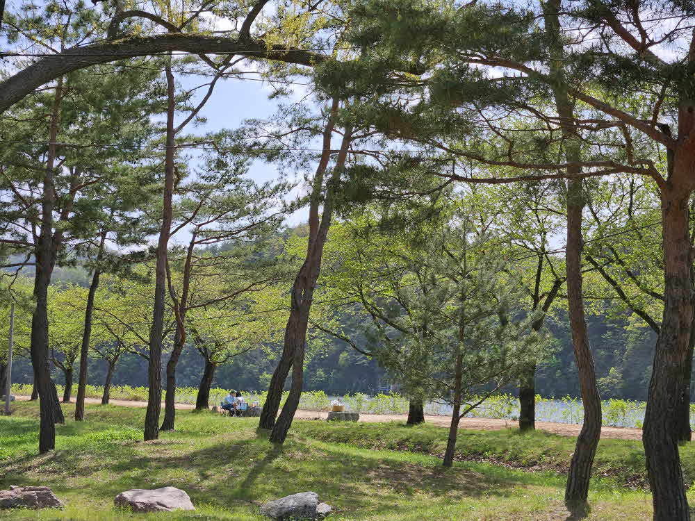 거대한 벚꽃나무 안쪽으로 소나무 군락지