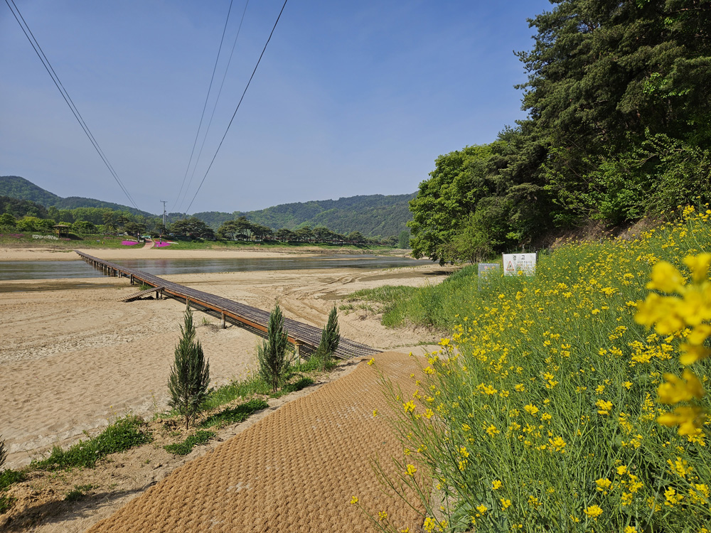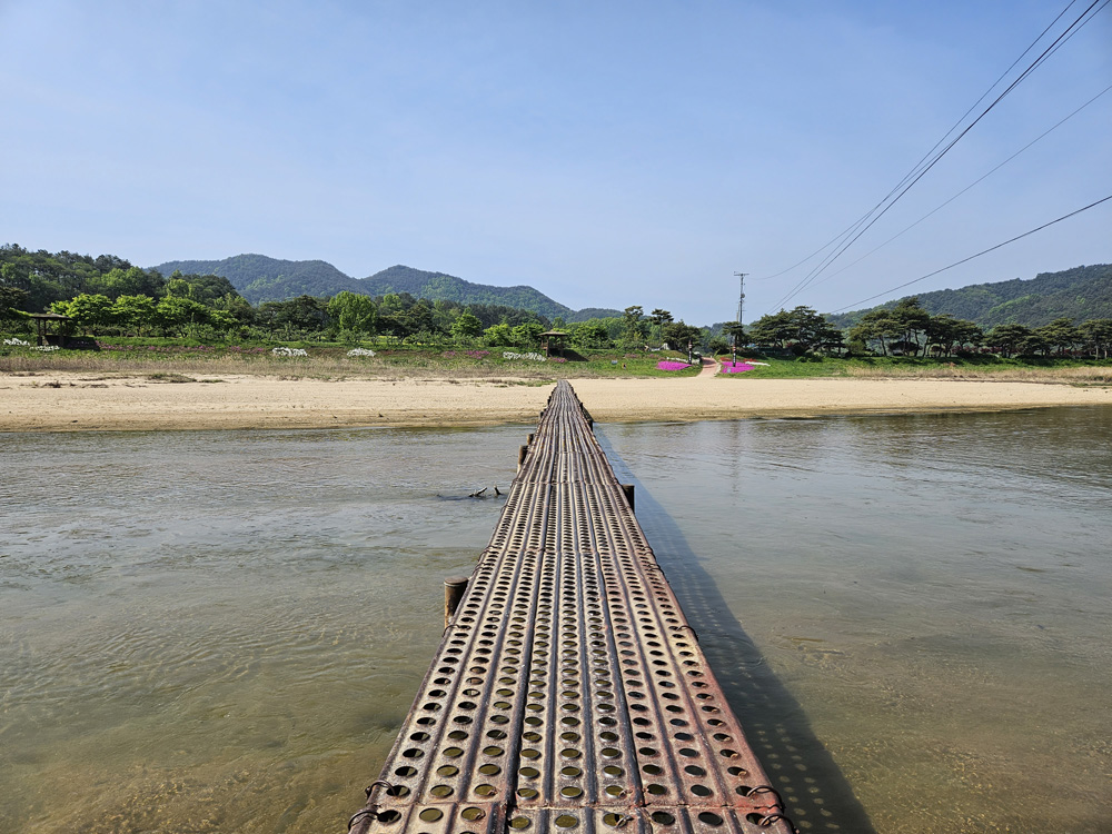 뿅뿅다리 아래로는 회룡포 마을을 감싸고 흐르는 내성천이 있어요.