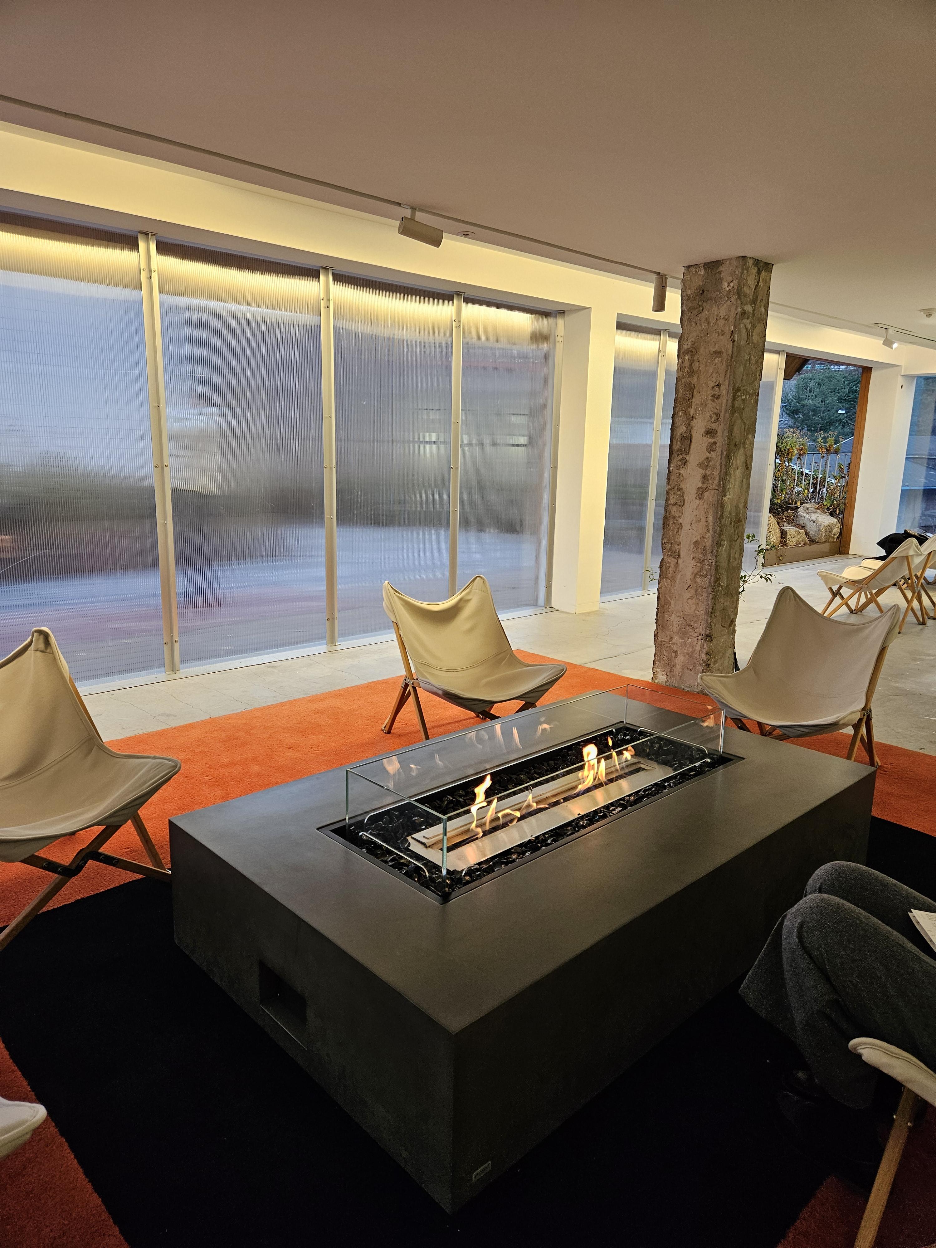 개방감 있는 실내 난로 공간
