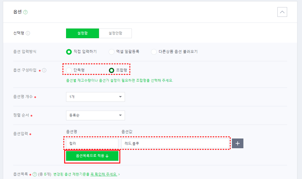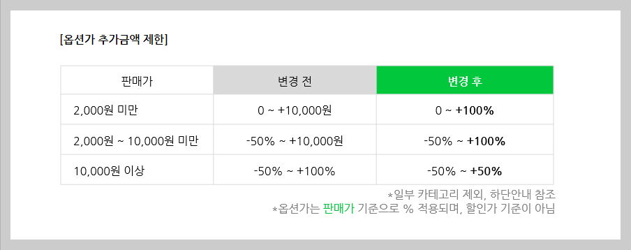 *[옵션 가격설정 : + - 상품가격의 50%(1만원 이상) ]