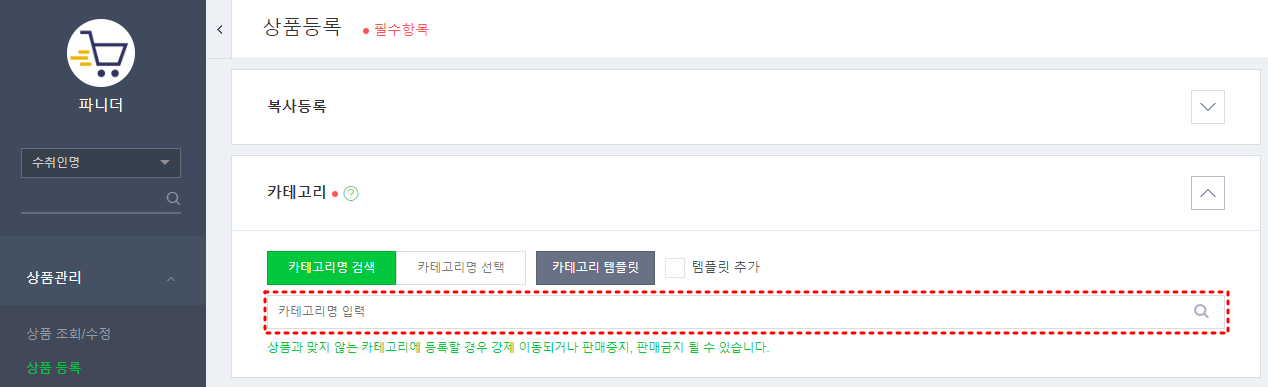 * [맞지 않는 카테고리 등록시 검색노출 등의 불이익이 있을수 있음]