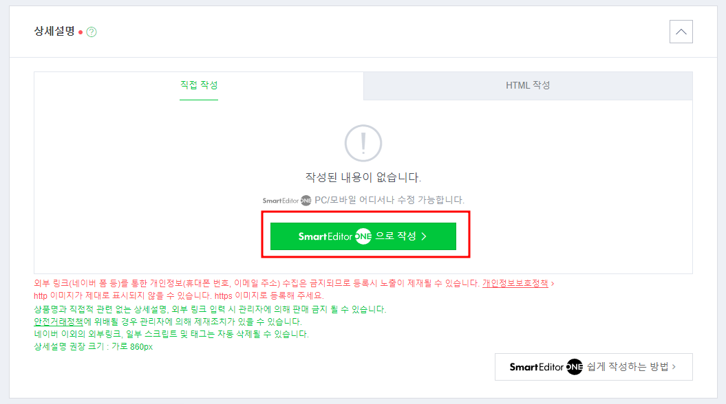 6. 상세 페이지 작성: 스마트 에디션 도구를 사용하여 상품 상세 페이지를 쉽게 등록