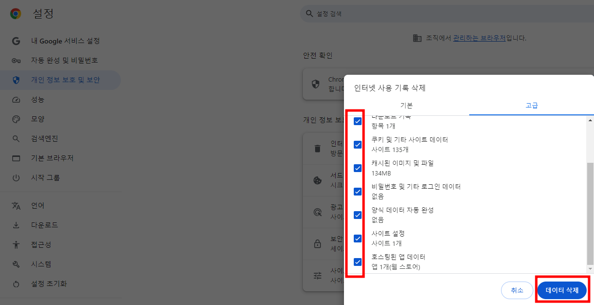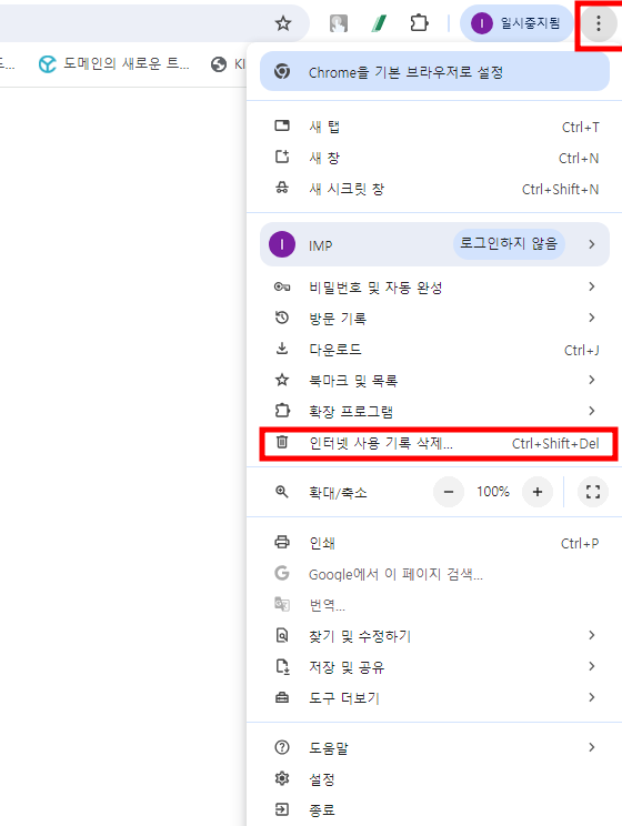 1.인터넷 사용 기록 및 캐시 삭제
