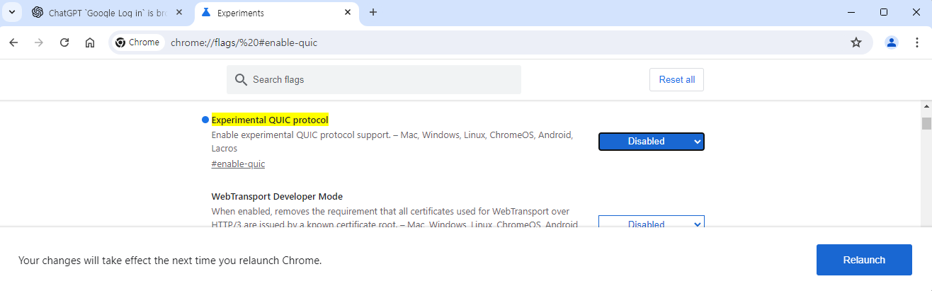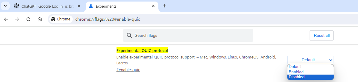 QUIC 프로토콜 비활성화