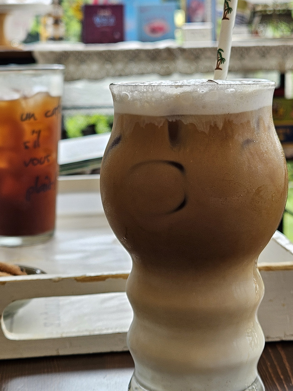 카페 안으로 들어가 보면, 각종 음료수와 쿠키들이 예쁘게 진열되어 있어요. 깨찰빵이 주 목적이었지만, 딸기 스무디도 시도해봤답니다. 스무디를 기다리며 가게 내부를 둘러보니, 곳곳에 예쁘게 꾸며진 미니 장식품들이 눈에 들어왔어요. 세트로 팔고 있는 미니미니 장식품들은 집에 두면 너무 예쁠 것 같더라구요. 그리고 귀여운 미니 자전거 장식품도 발견했어요. 요리책과 수제 디저트도 함께 팔고 있는데, 다양하고 아기자기한 아이템들이 많아서 구경하는 재미도 쏠쏠했어요. 이곳만의 독특한 분위기를 느낄 수 있는 특별한 공간입니다.
