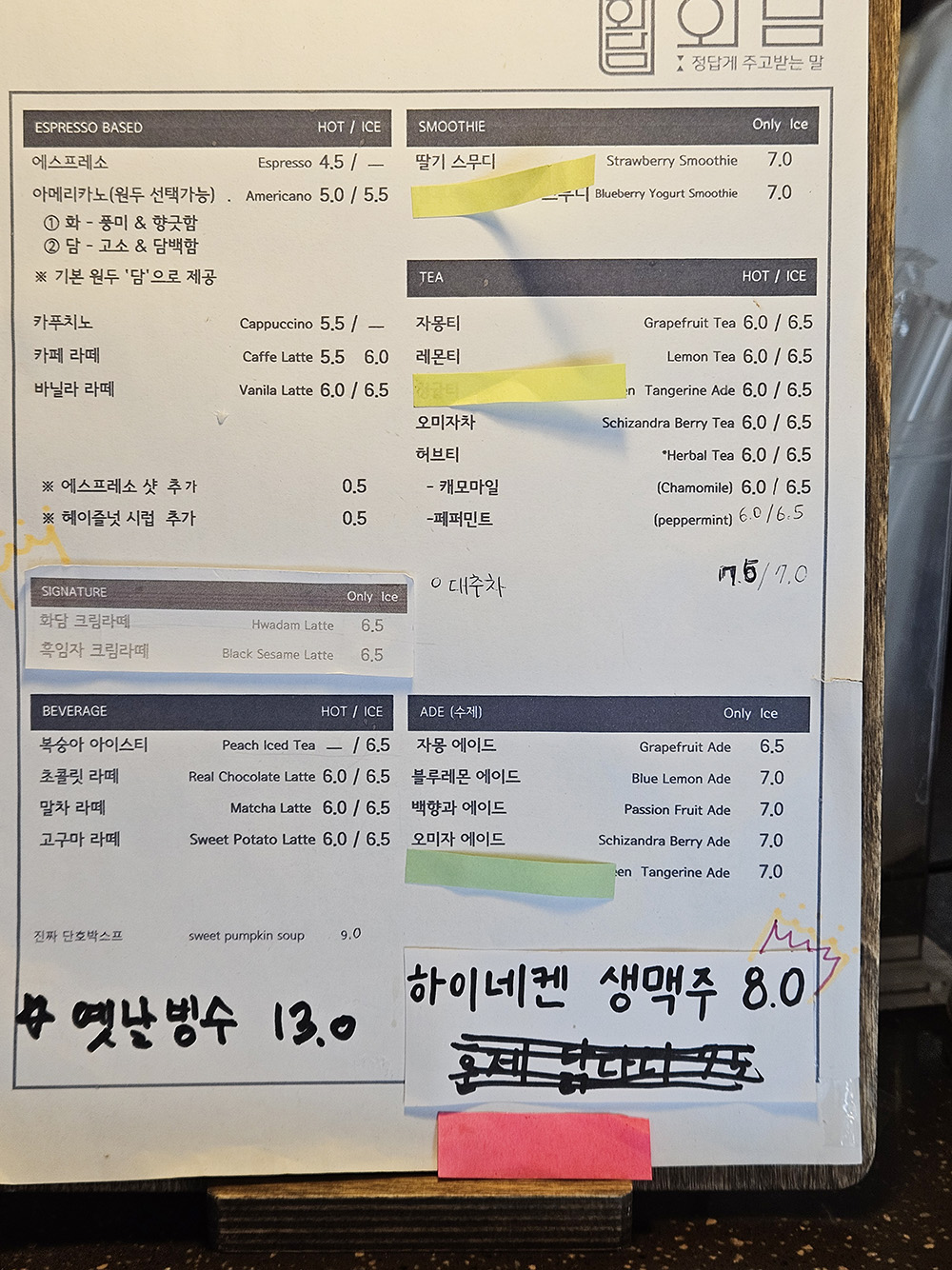 이 외에도 스무디, 티, 에이드 등 다양한 음료를 즐길 수 있어요.