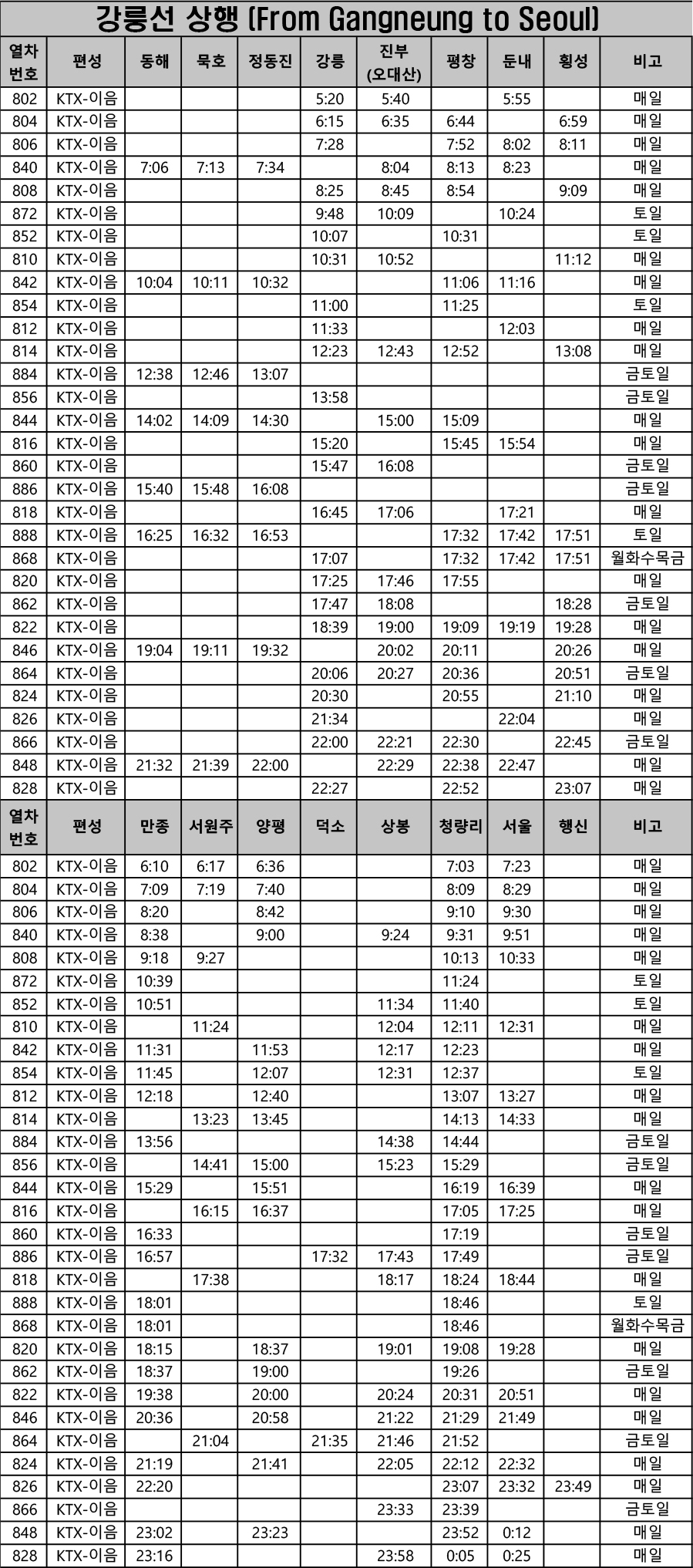 | ktx 중앙선, 청량리역-울산 태화강역-부전역 기차시간표(2024. 12. 20부터) (0) | 2024.12.16 |