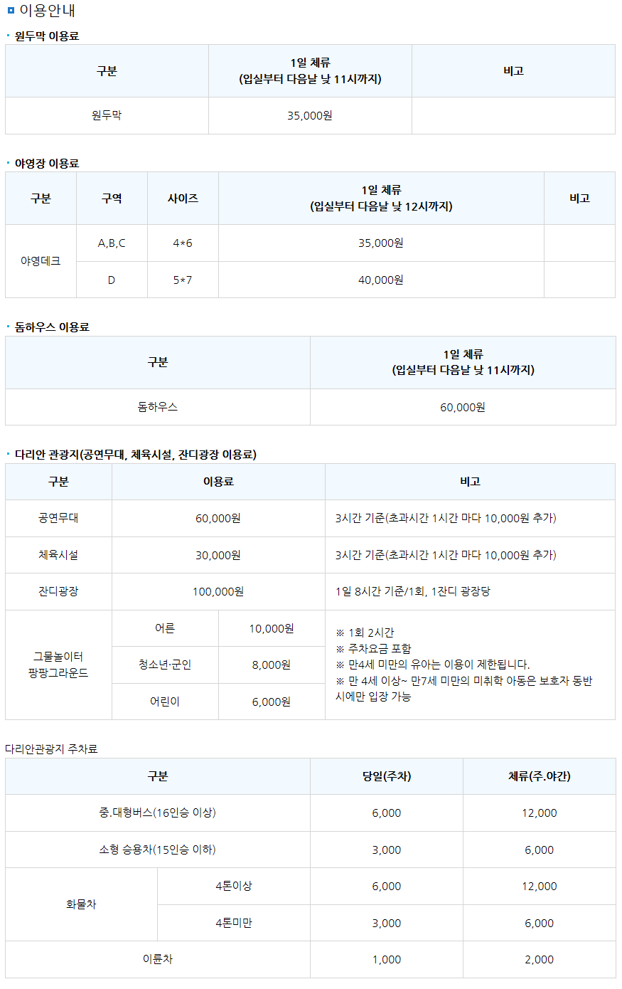 예약하실때 데크이용료 내시고 방문시 주차료 내시면 됩니다.