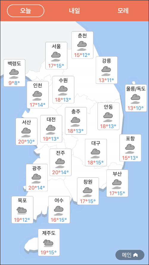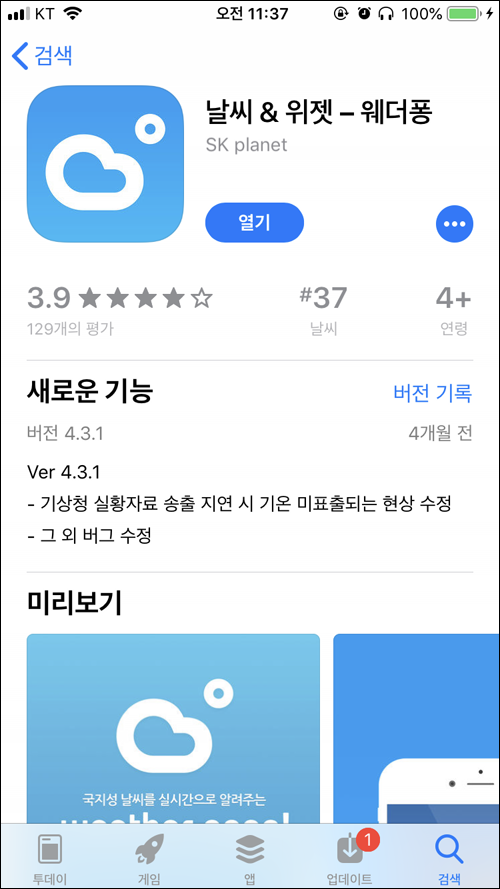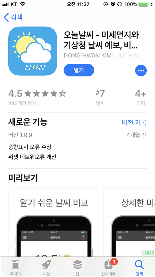 오늘날씨를 겸해서 쓰기 전에 단독으로 쓰던 날씨 어플이다.