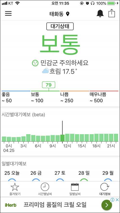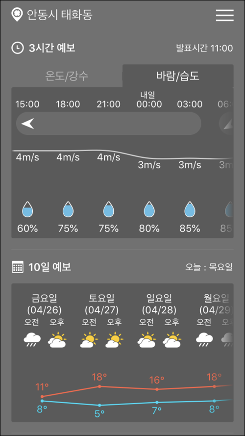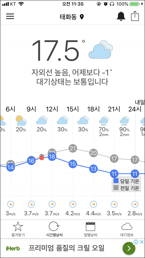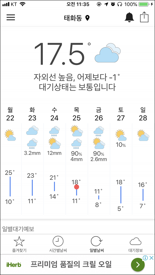 이런식으로 최근 며칠간의 기온변화를 금방 파악할 수 있어서 편리하다.