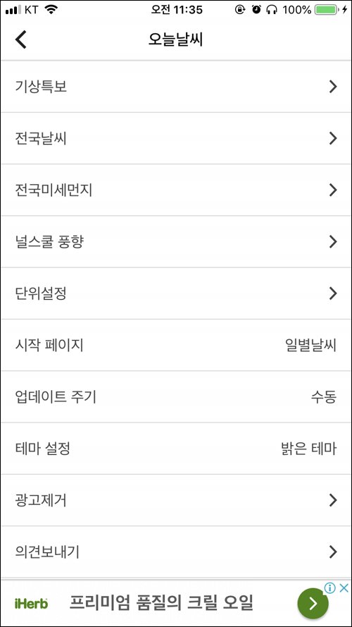 첫 시작페이지를 일별날씨로 설정해놓고 사용하고 있는데,