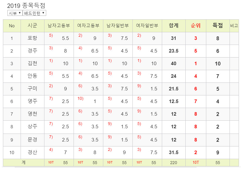 종합순위 시부순위